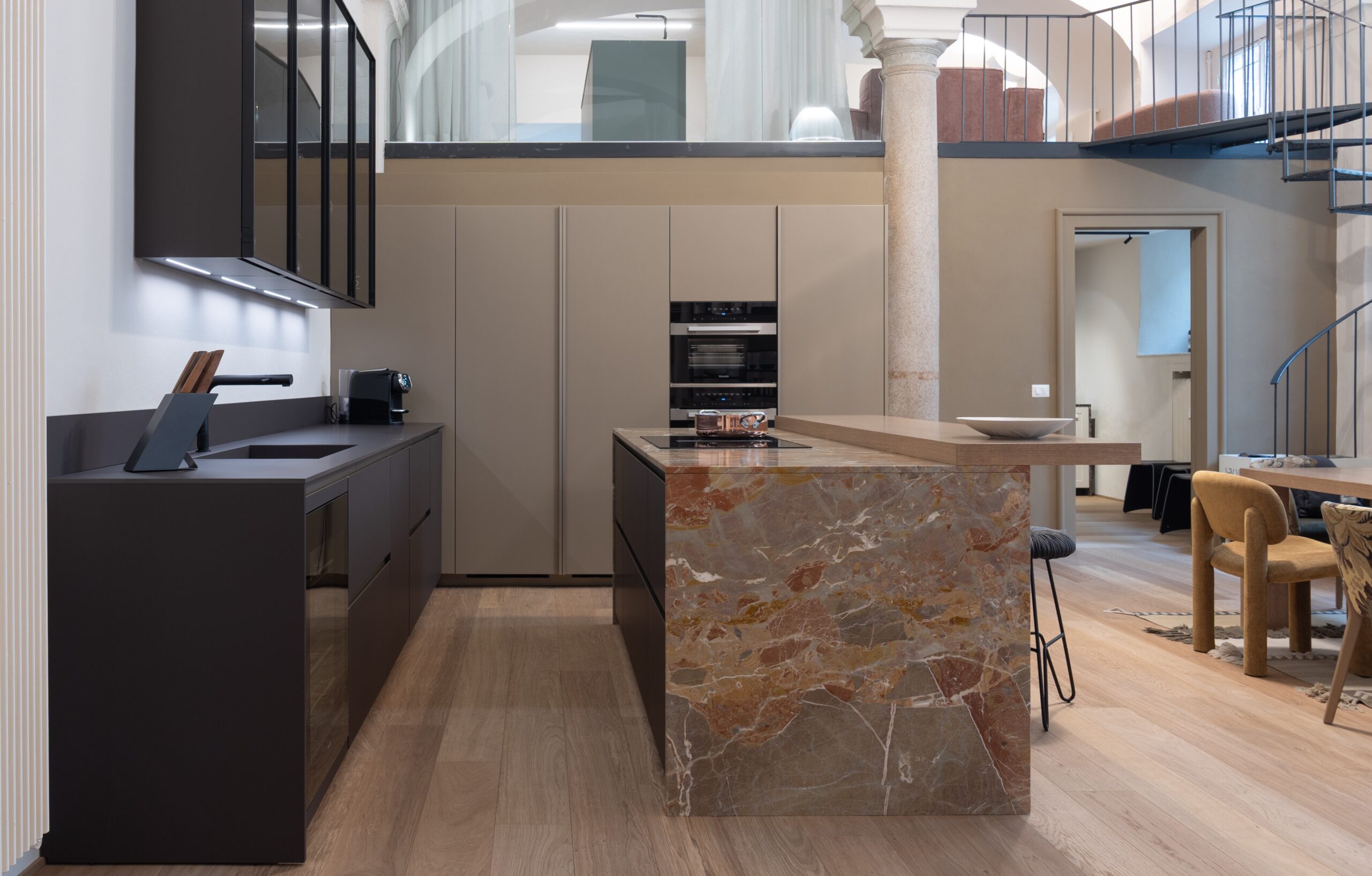 Oltre all’impatto visivo, l’isola aggiunge valore pratico. Può ospitare il piano cottura, il lavello, creare un’ampia superficie di lavoro oppure diventare un angolo snack perfetto per la colazione o l’aperitivo. Le cucine moderne con isola offrono infinite possibilità di personalizzazione, adattandosi sia a spazi ampi sia a layout più compatti.