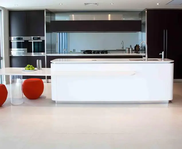 - Piani di lavoro innovativi, realizzati con materiali resistenti e igienici, dotati di proprietà antibatteriche, autopulenti e antigraffio.