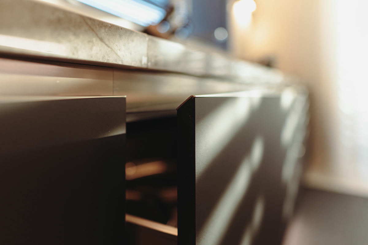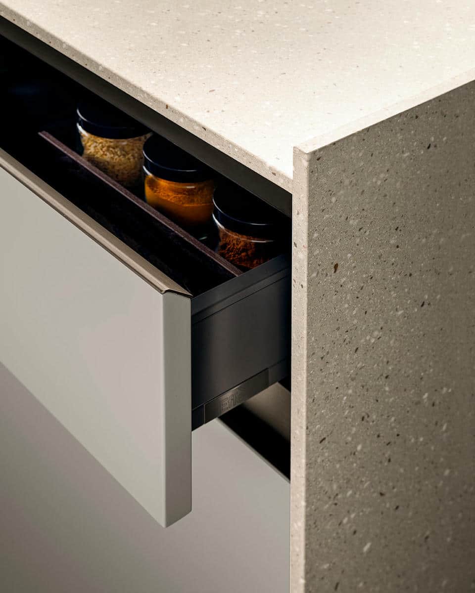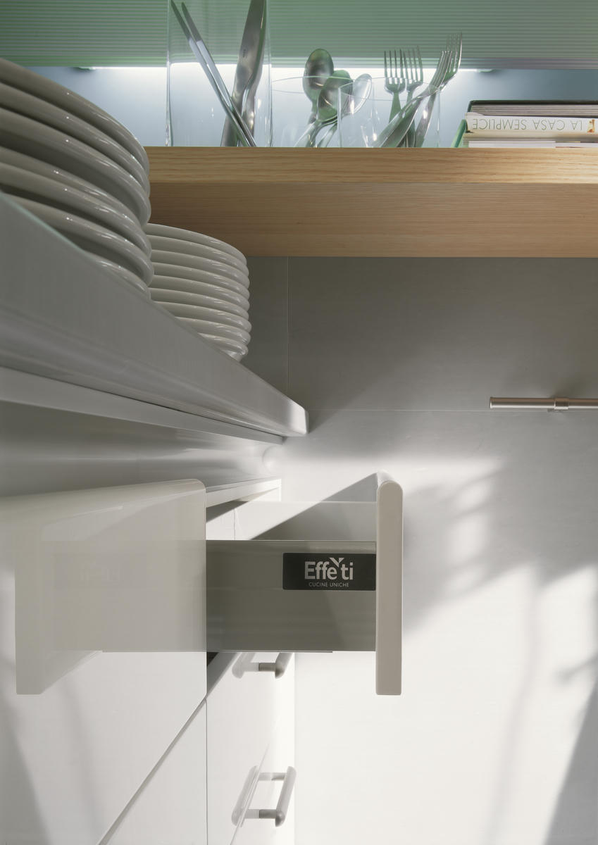 Le cucine senza maniglia di Effeti rappresentano una soluzione versatile ed elegante che non passa mai di moda. Il design funzionale con gole ergonomiche garantisce inoltre una presa sicura e confortevole, rendendo l’apertura e la chiusura di ante e cassetti intuitive e semplici.
