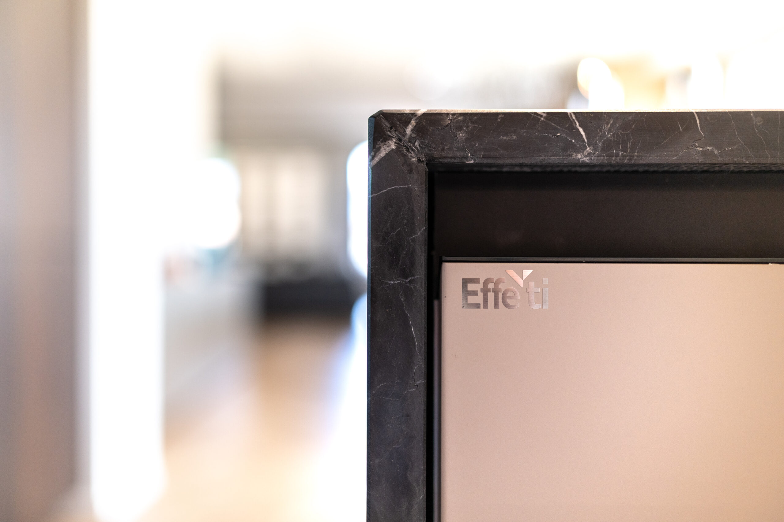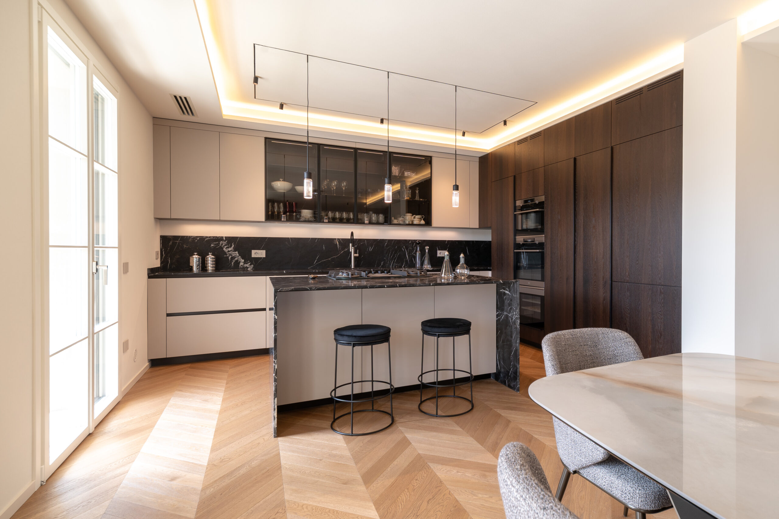 Description: In a residential setting in Empoli, the EØ design kitchen stands out for its refined balance of materials, proportions, and finish details.