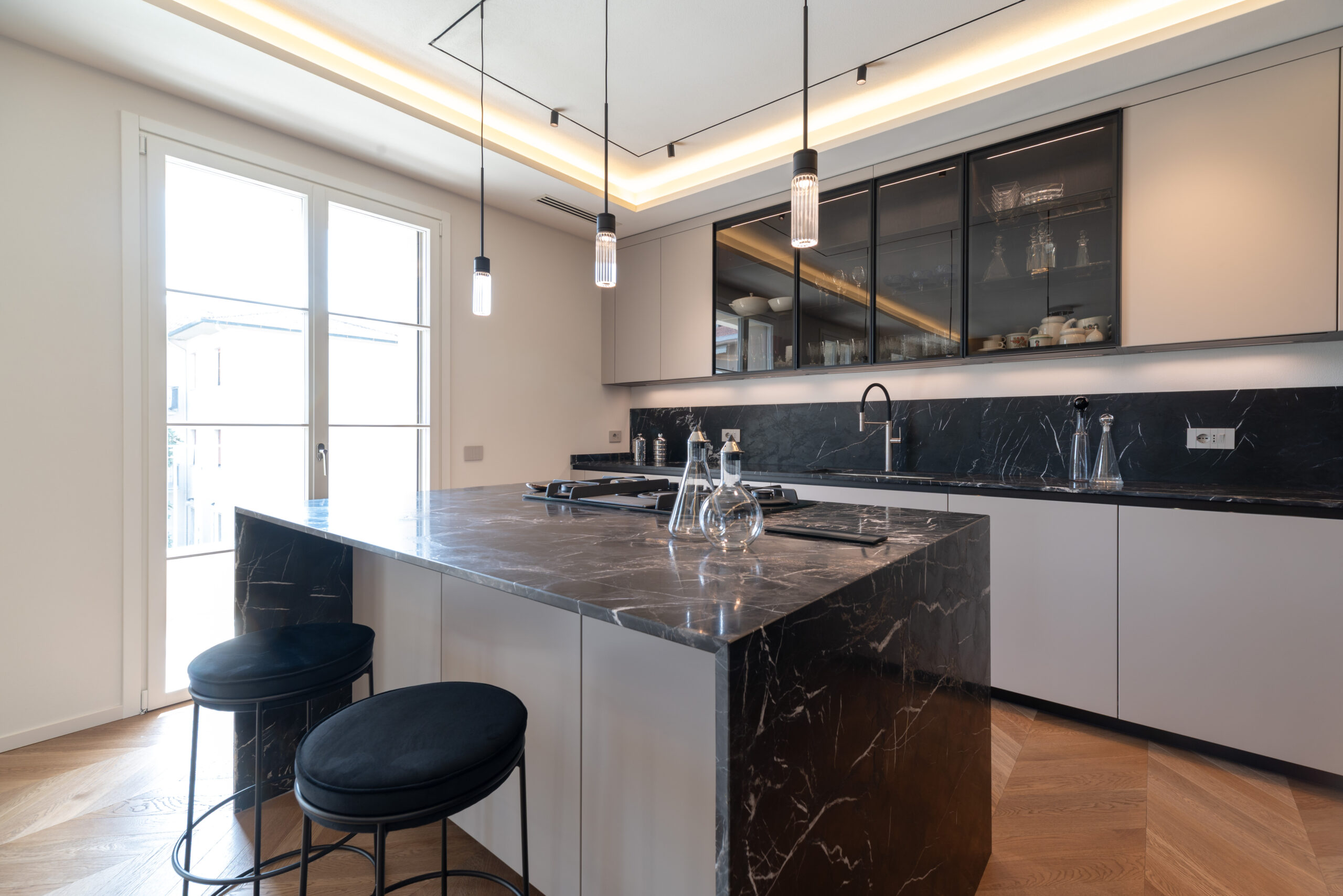 A visually striking composition designed for those who seek harmony between style and function, while staying true to the distinctive identity of Italian kitchen design.
