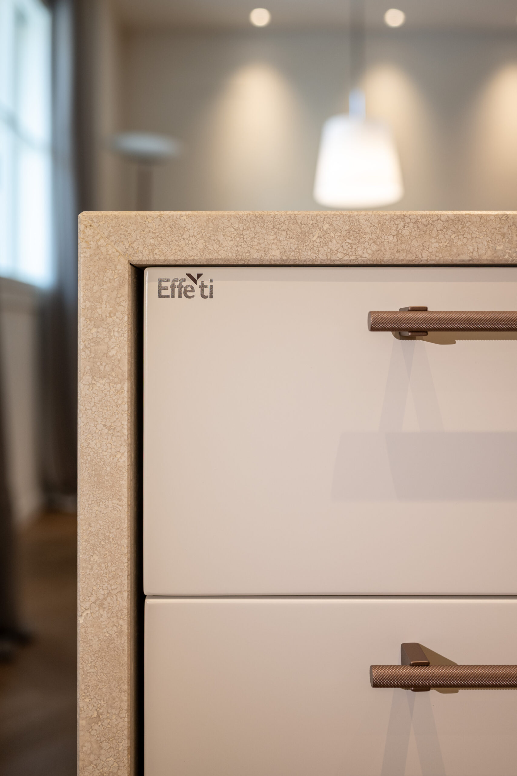 This kitchen with island embodies a bespoke project designed to meet both aesthetic and practical needs, crafted with the artisanal quality that defines every Effeti kitchen.