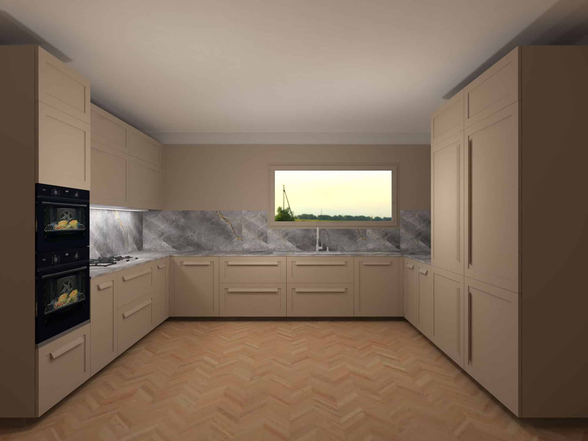 La cucina a ferro di cavallo – conosciuta anche come cucina a U – è progettata per chi desidera ottenere massima funzionalità, ergonomia e superficie operativa. Disposta su tre lati, questa configurazione avvolge l’ambiente e trasforma l’area cucina in uno spazio altamente immersivo, progettato per vivere i gesti quotidiani con fluidità e precisione.