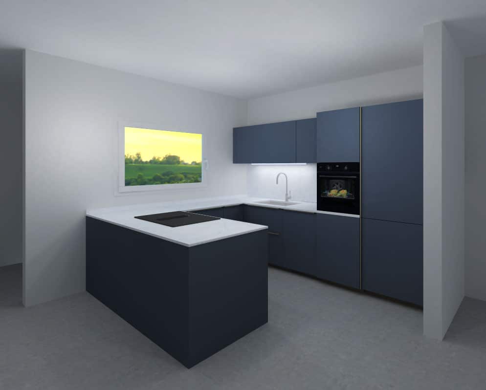 La penisola può avere una lunghezza minima di 150 cm e una profondità variabile tra 60 e 80 cm. Se dotata di lavello o piano cottura, sarà necessario integrare nel progetto predisposizioni tecniche per l’allaccio a impianti elettrici o idrici. Per garantire comfort e movimento, si consiglia uno spazio frontale di almeno 90–100 cm.