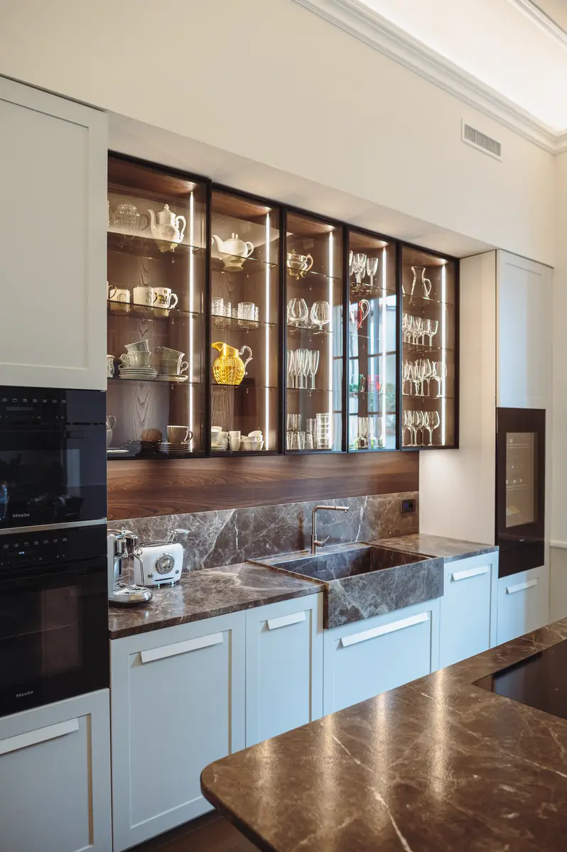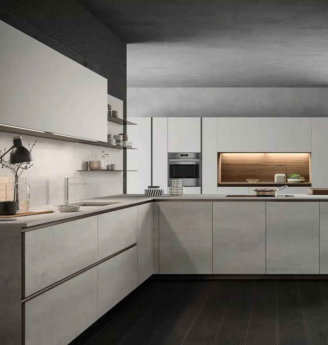 Effeti offre la possibilità di integrare entrambi i materiali nelle diverse composizioni: lineare, con isola, con penisola o a ferro di cavallo. In questo modo, la scelta non si limita al materiale, ma si inserisce in un disegno più ampio, dove funzionalità ed estetica dialogano con lo spazio architettonico.
