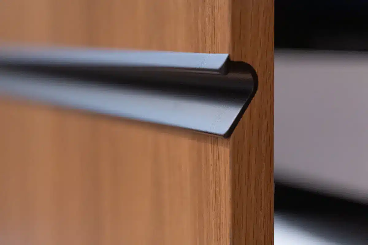 Un ulteriore vantaggio è la manutenzione: basta un panno morbido e detergenti delicati per conservarne l’aspetto originale. Per chi desidera coordinare le superfici, il laminato può essere usato anche per i piani di lavoro, creando un effetto omogeneo tra top e ante.
